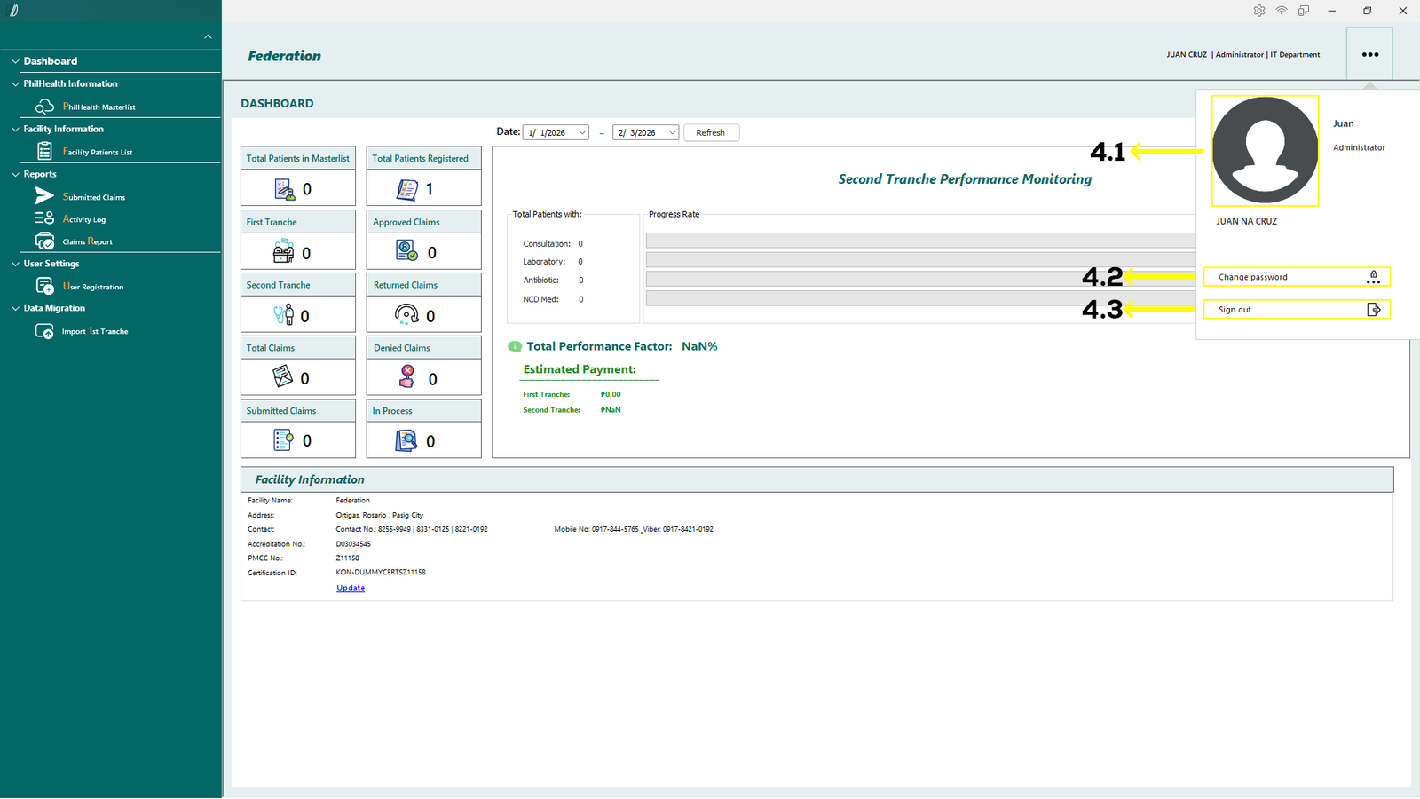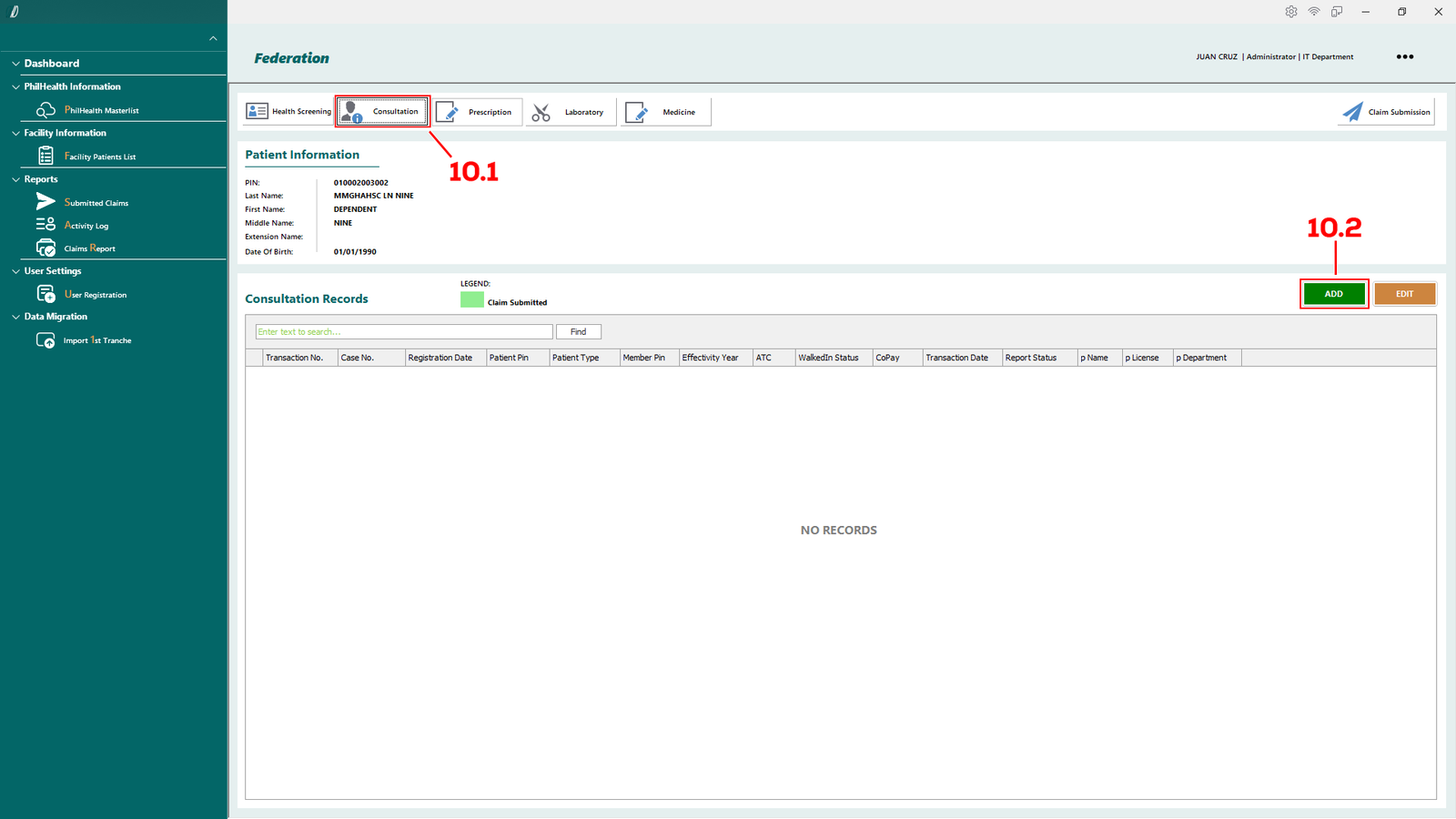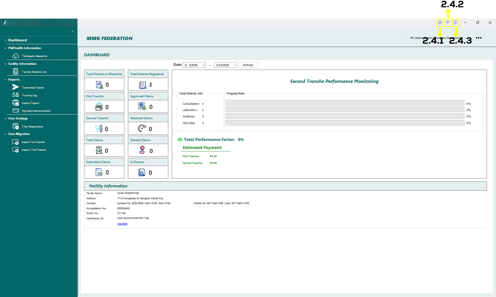 - 2.4.2. Show if you are connected to Philhealth database.