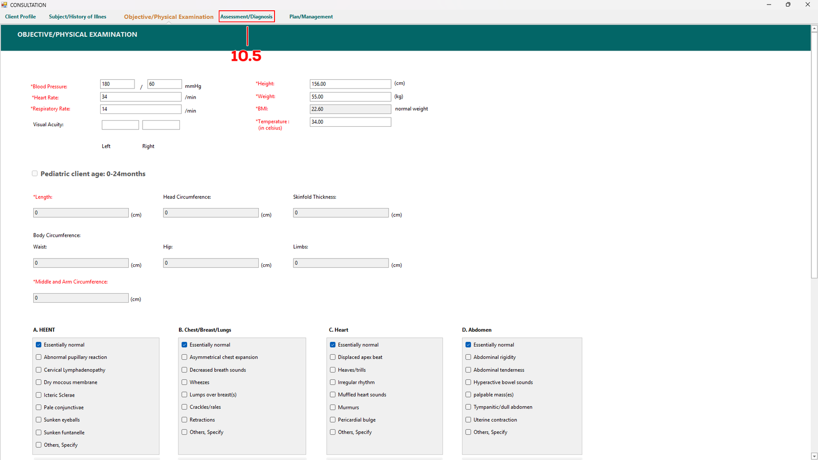 Fill up all the necessary in this tab and proceed to Assesment/Diagnosis (see 10.5) tab once completed.
