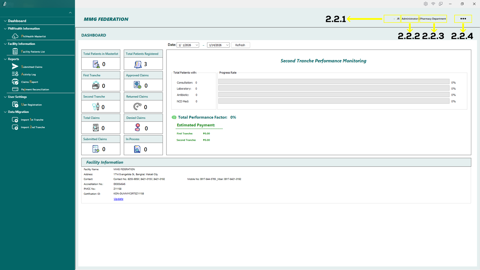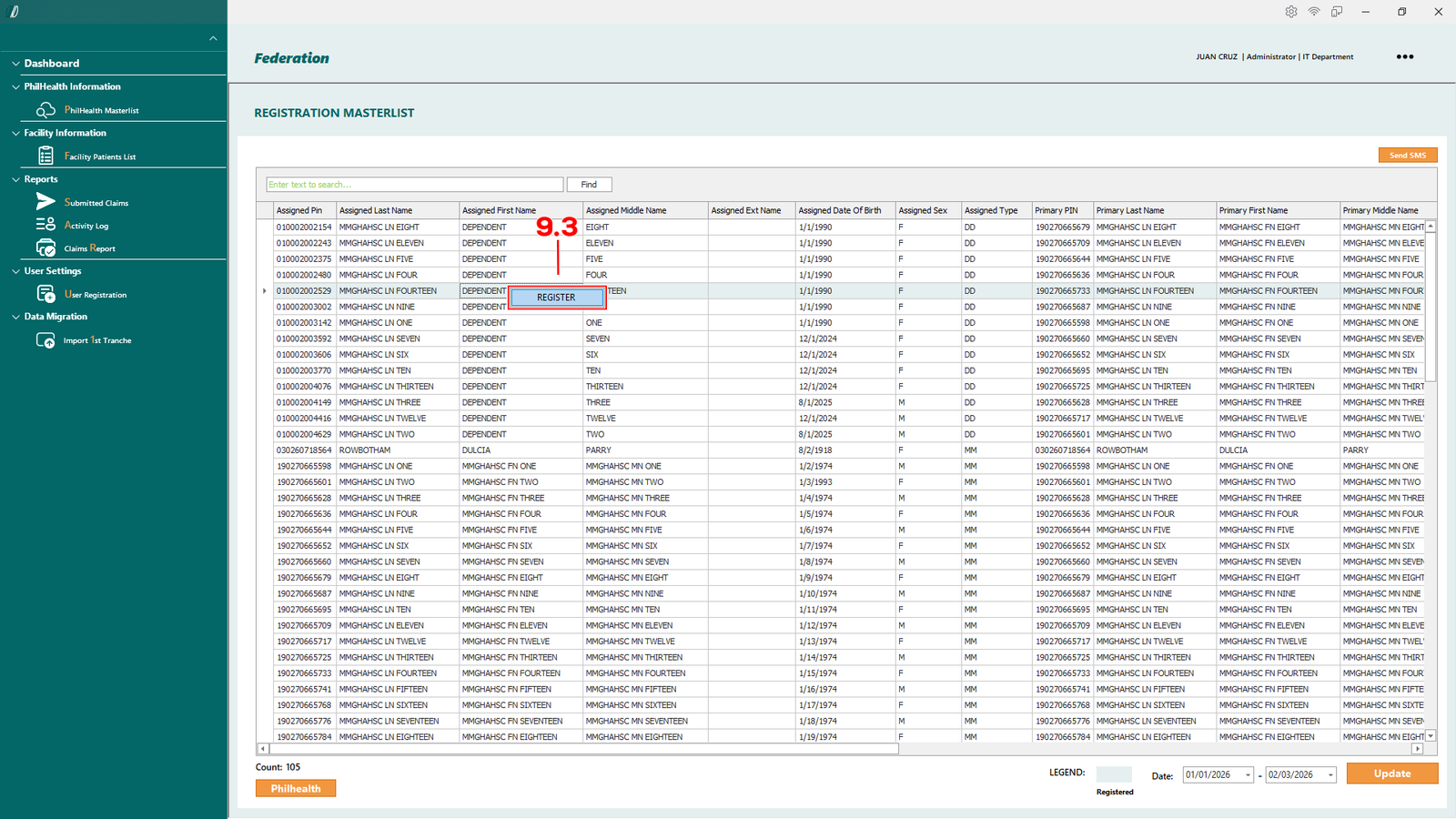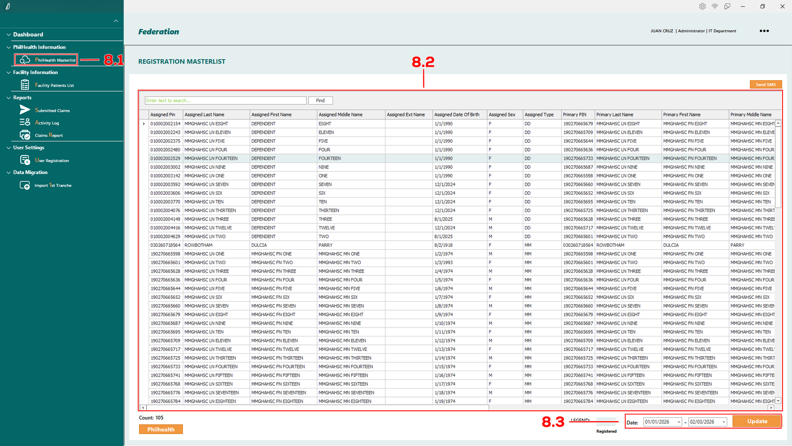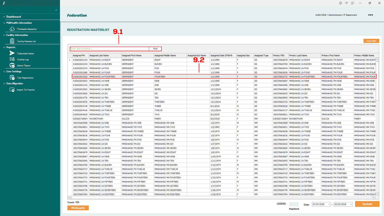 - 2.1.1 PhilHealth Masterlist – Opens the master list of patients retrieved from the PhilHealth database.
