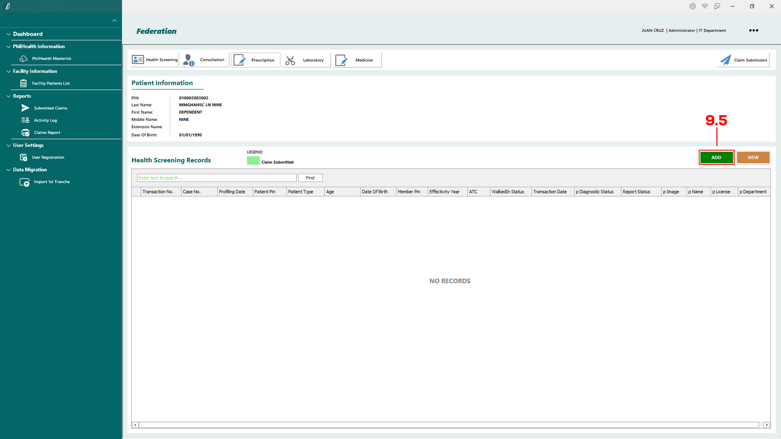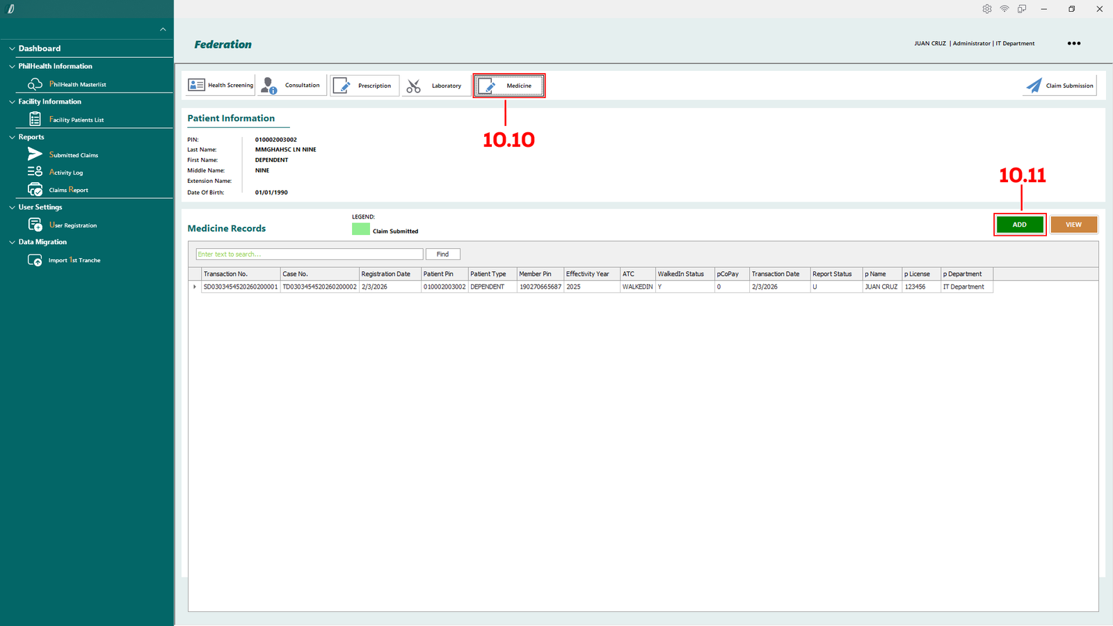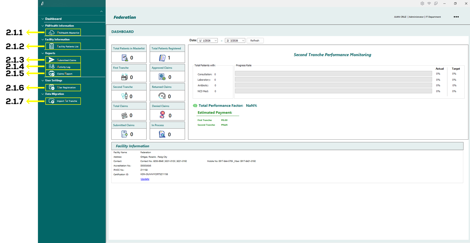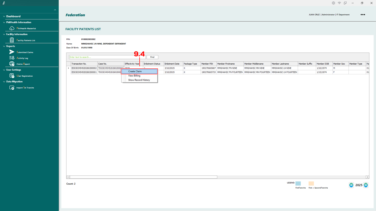 - 2.1.1 PhilHealth Masterlist – Opens the master list of patients retrieved from the PhilHealth database.