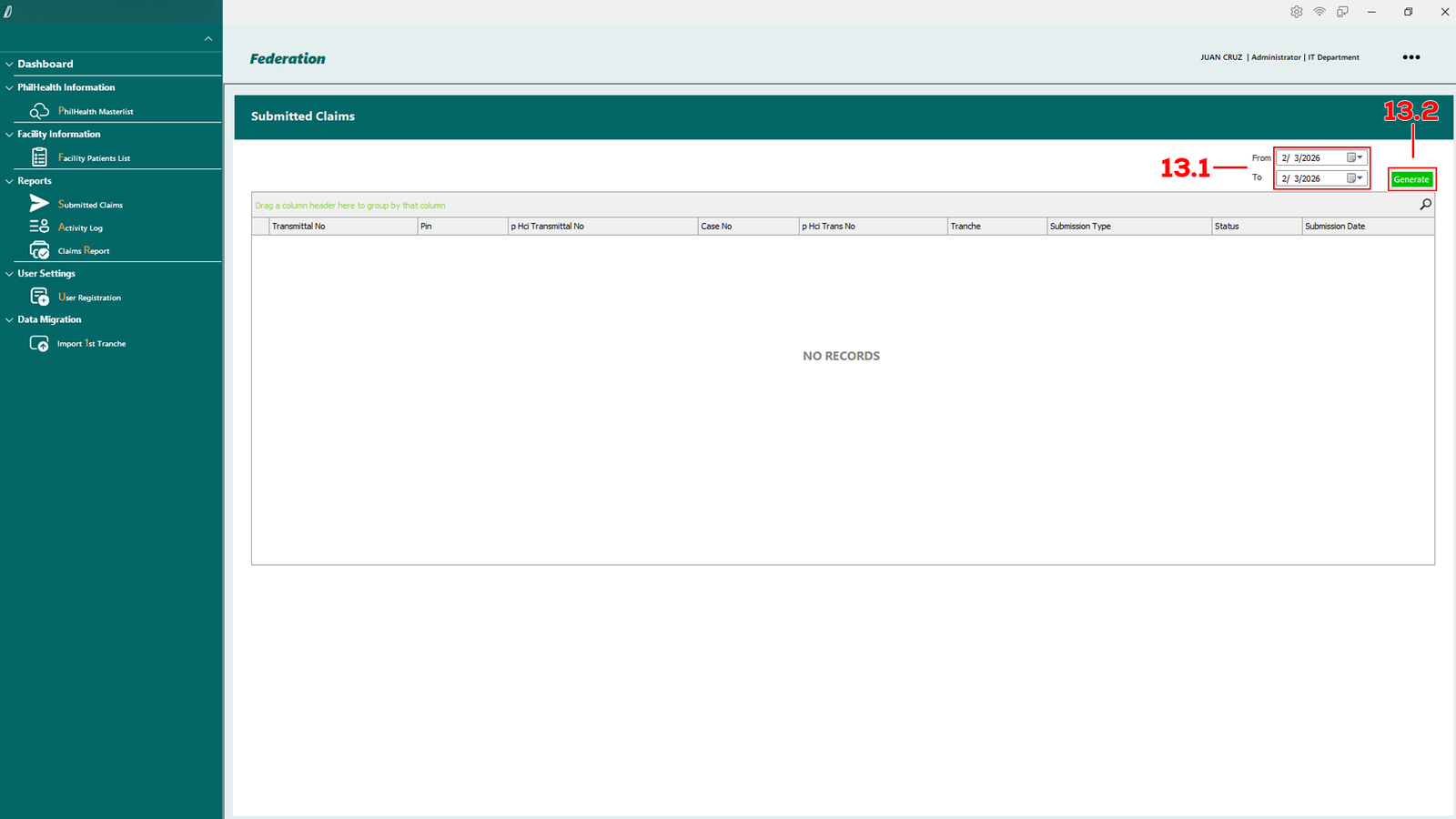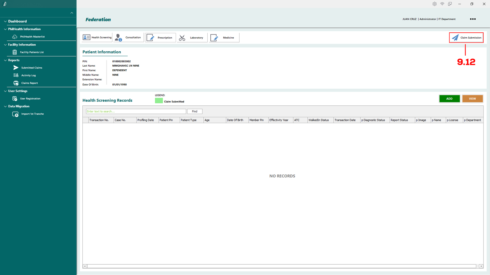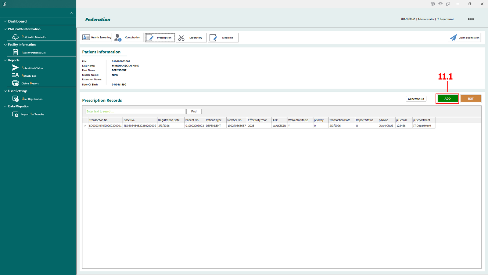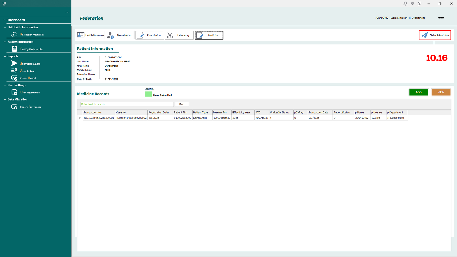 - 2.1.1 PhilHealth Masterlist – Opens the master list of patients retrieved from the PhilHealth database.