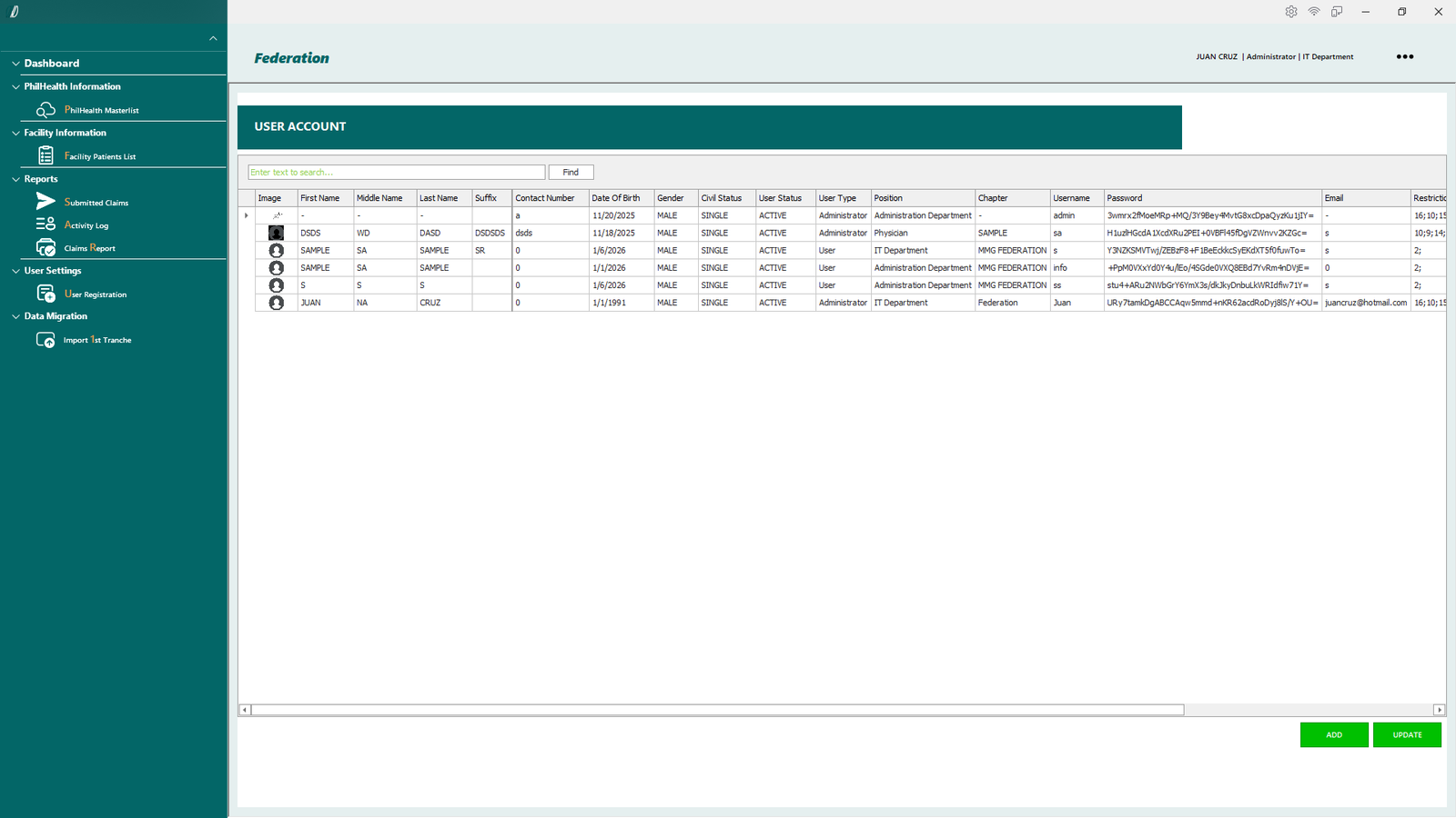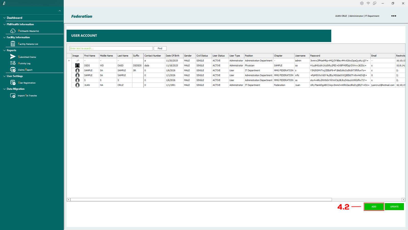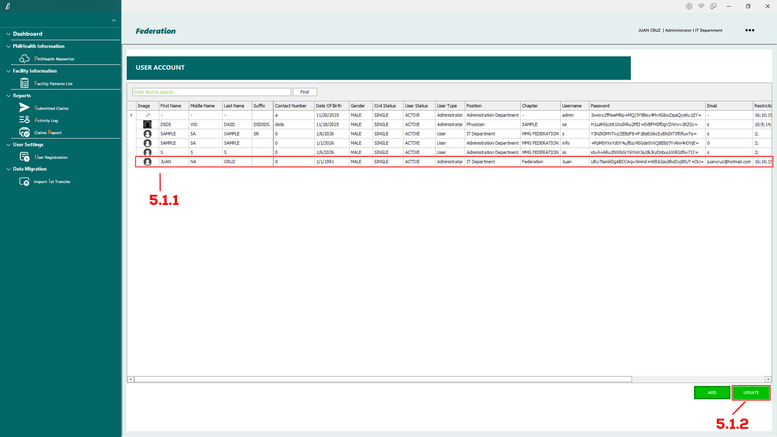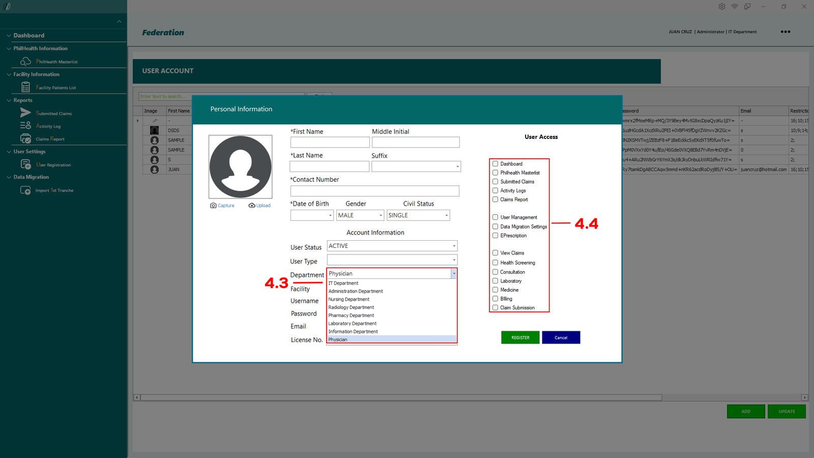 - 2.1.1 PhilHealth Masterlist – Opens the master list of patients retrieved from the PhilHealth database.