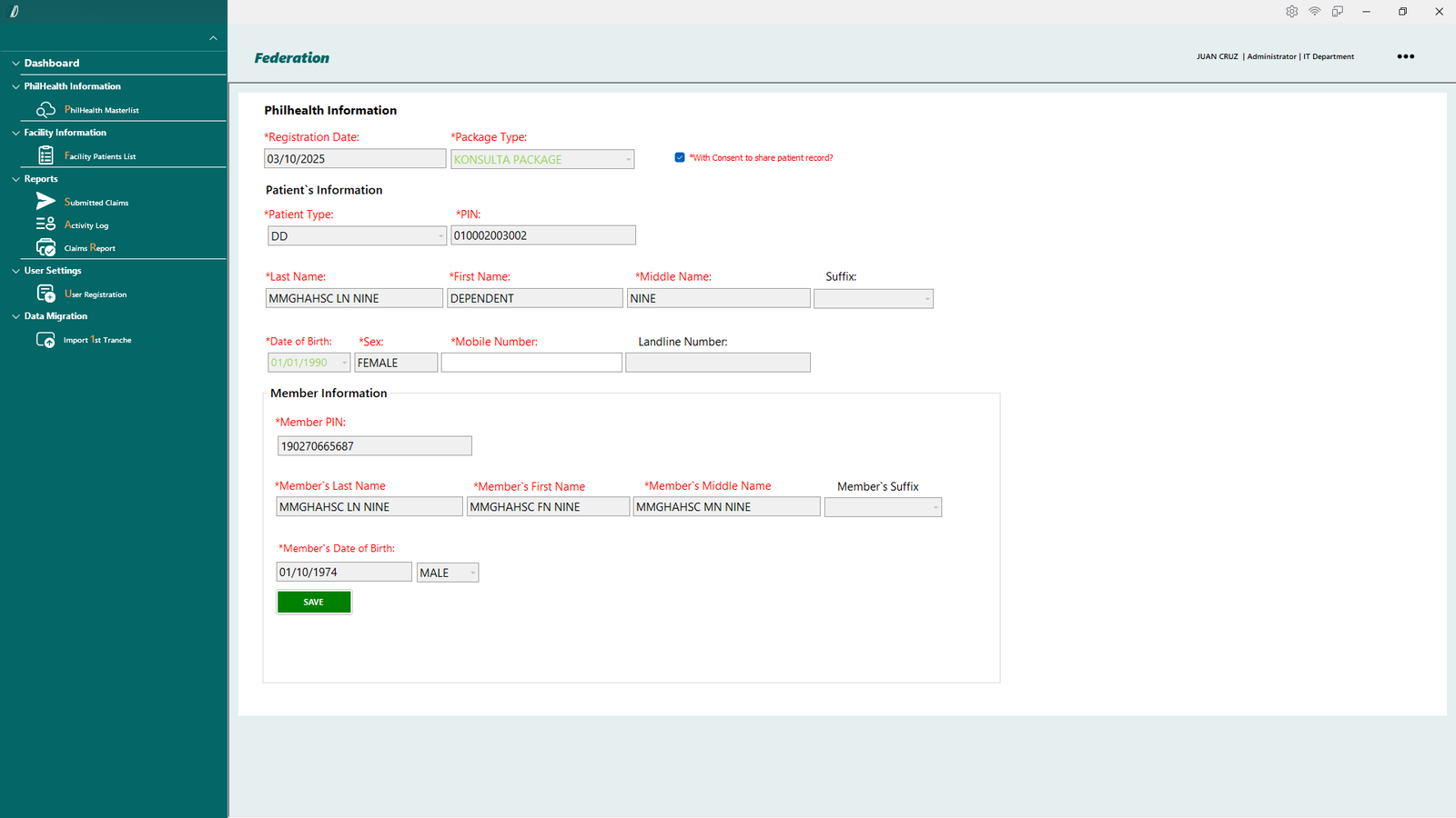 - Master List - Retrieves patient record from the Philhealth masterlist database.