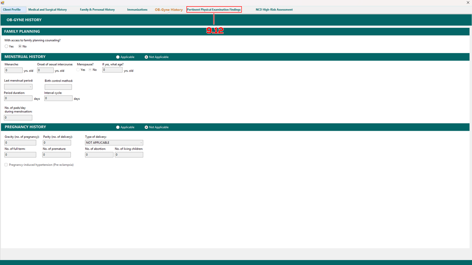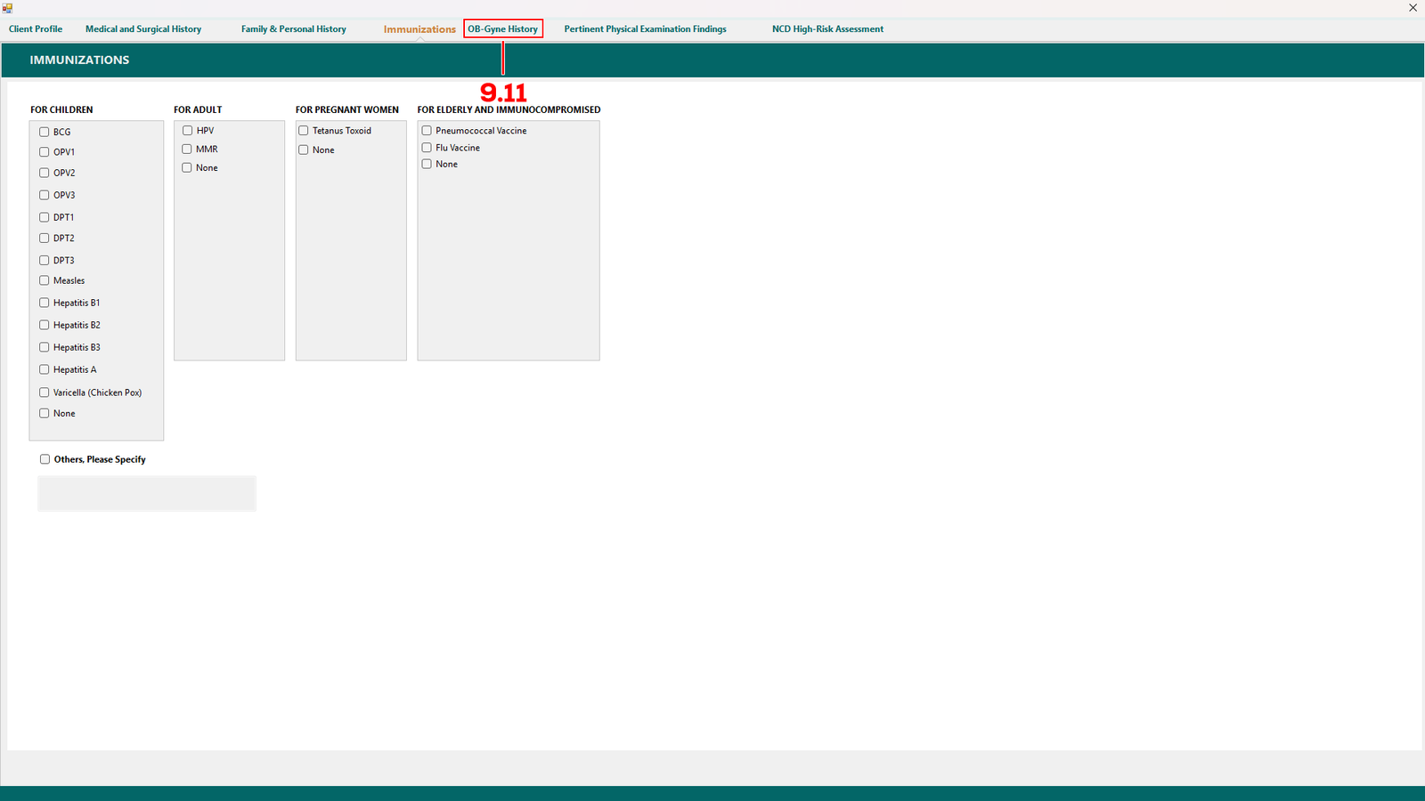 Then proceed to OB-Gyne History (see 9.11).