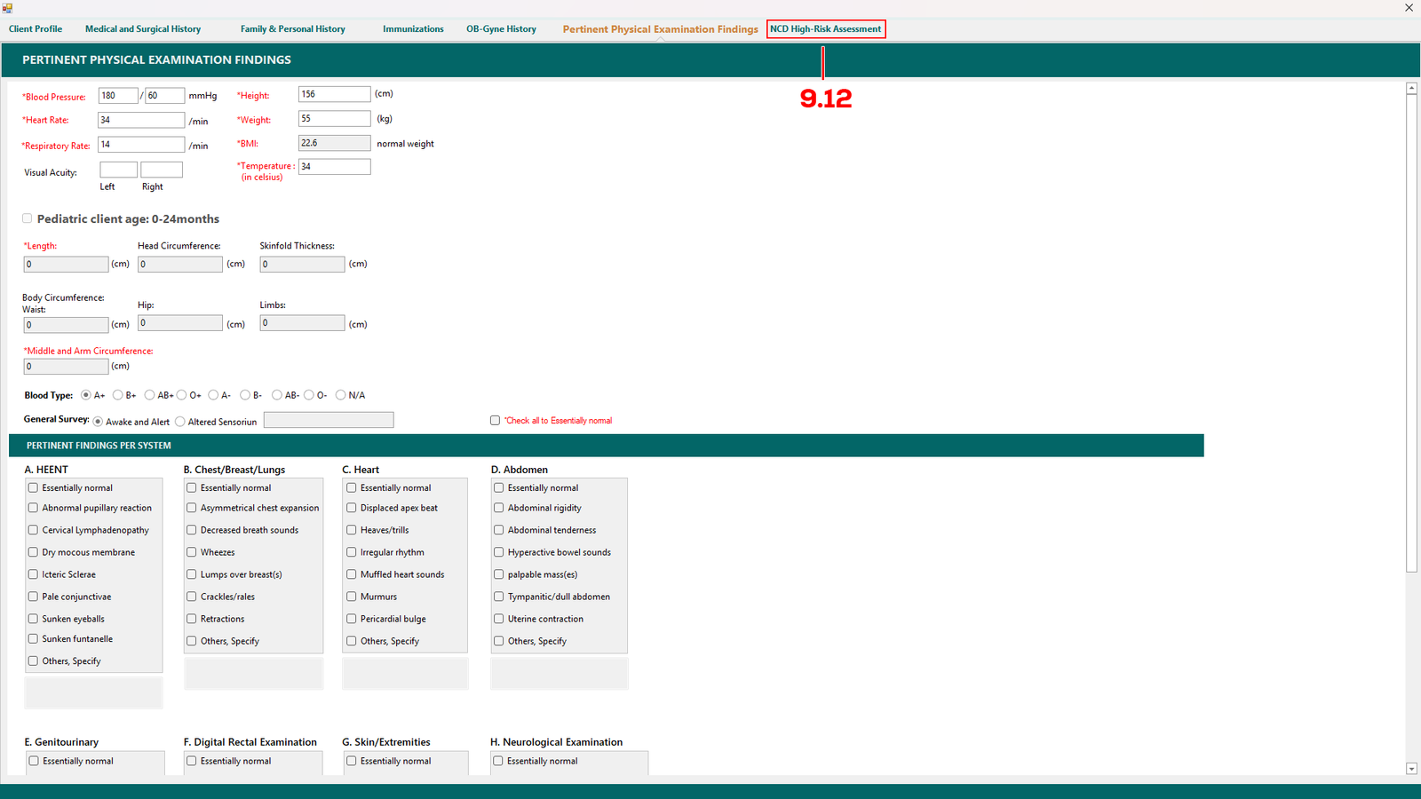 Then proceed to Pertinent Physical Examination Findings (see 9.12).