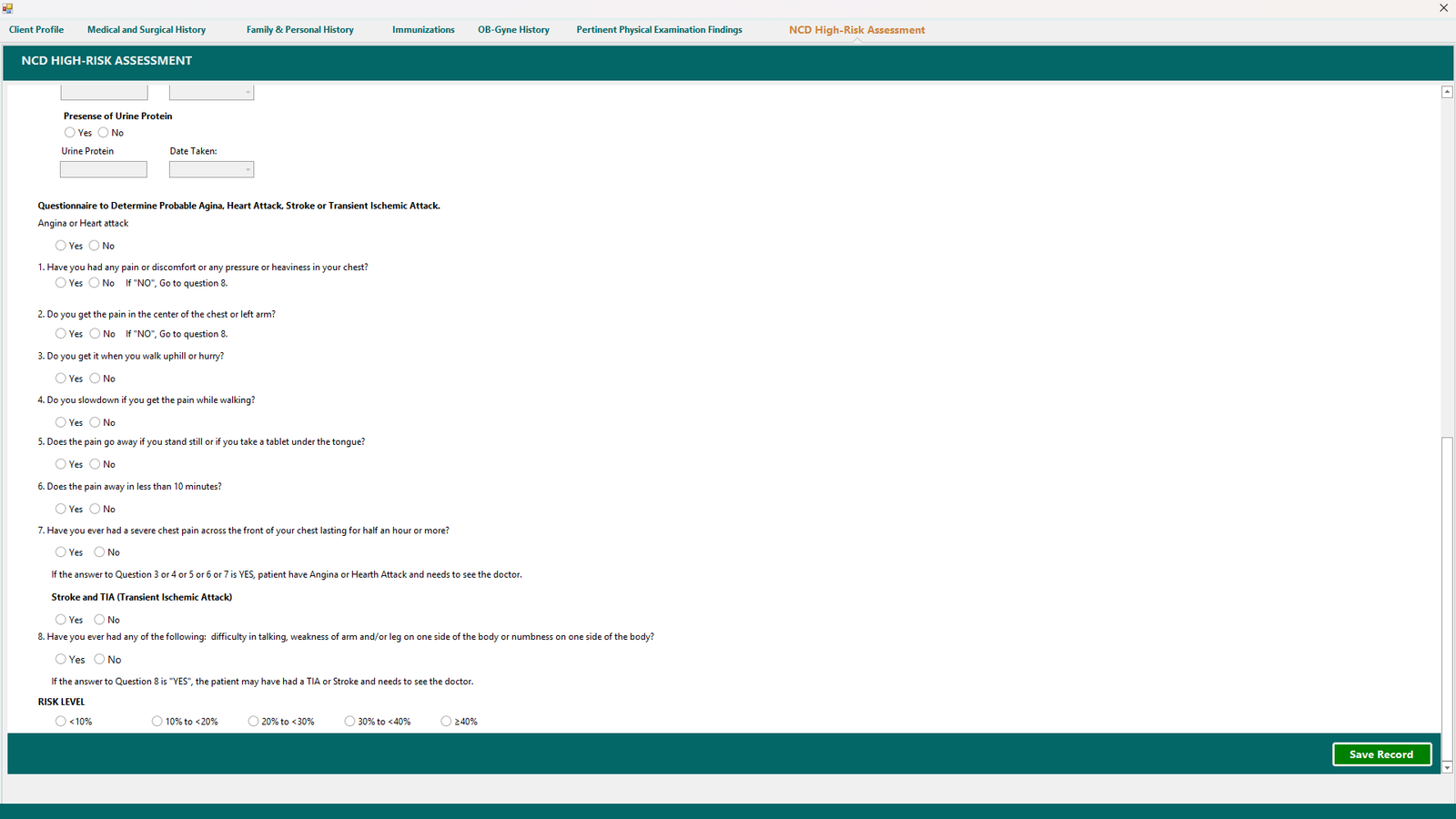 In the NCD High-Risk Assessment tab, complete all required fields.