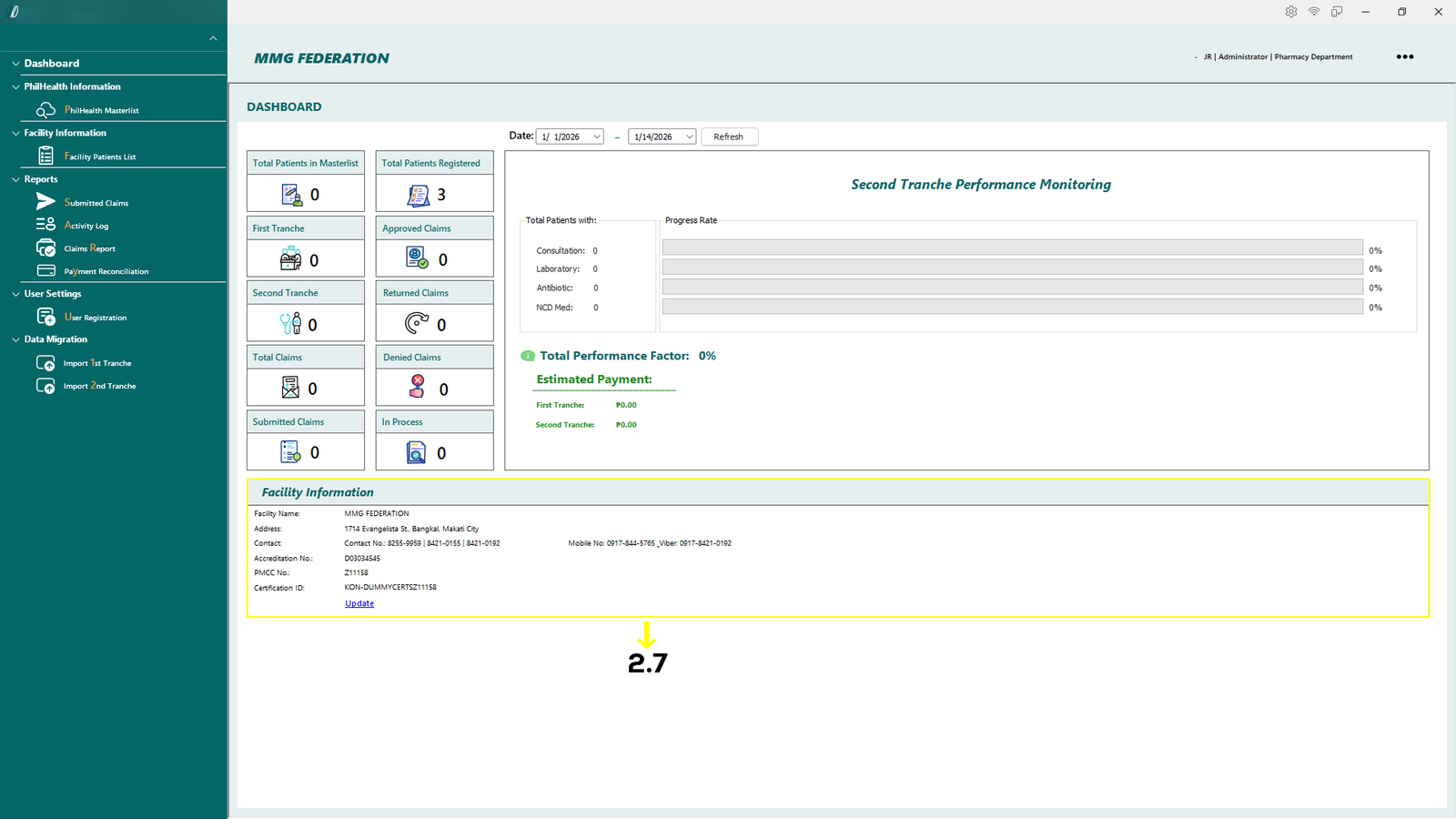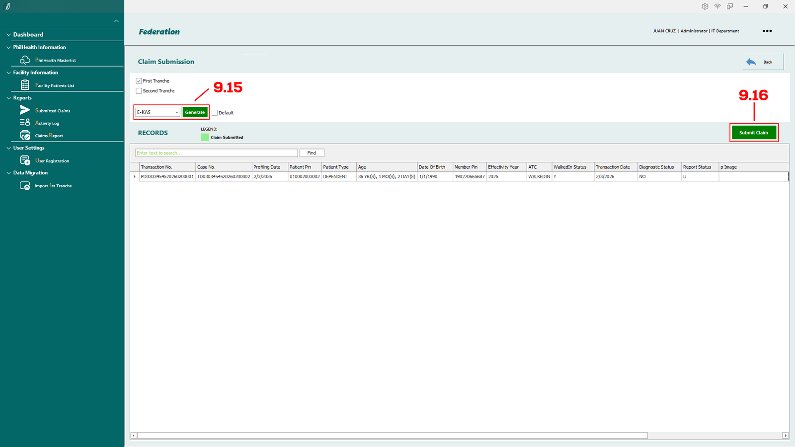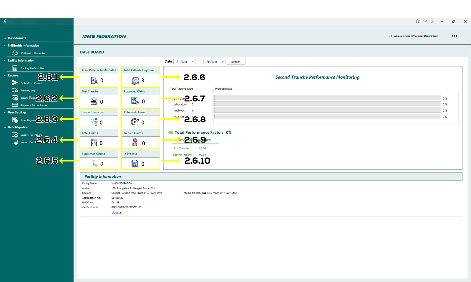 By centralizing claim-related workflows, the system minimizes manual processes, reduces errors, and improves overall operational efficiency. It enables healthcare facilities to accurately process First Tranche and Second Tranche claims, generate required documents such as E-KAS and E-PRES, and monitor claim status through activity logs and historical records.