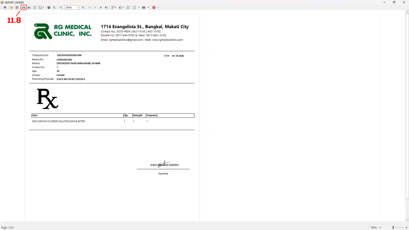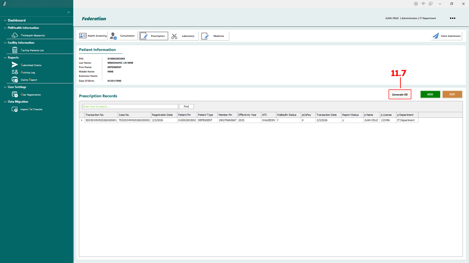 Here you can Generate RX or Print RX by clicking the Generate RX (see 11.7).