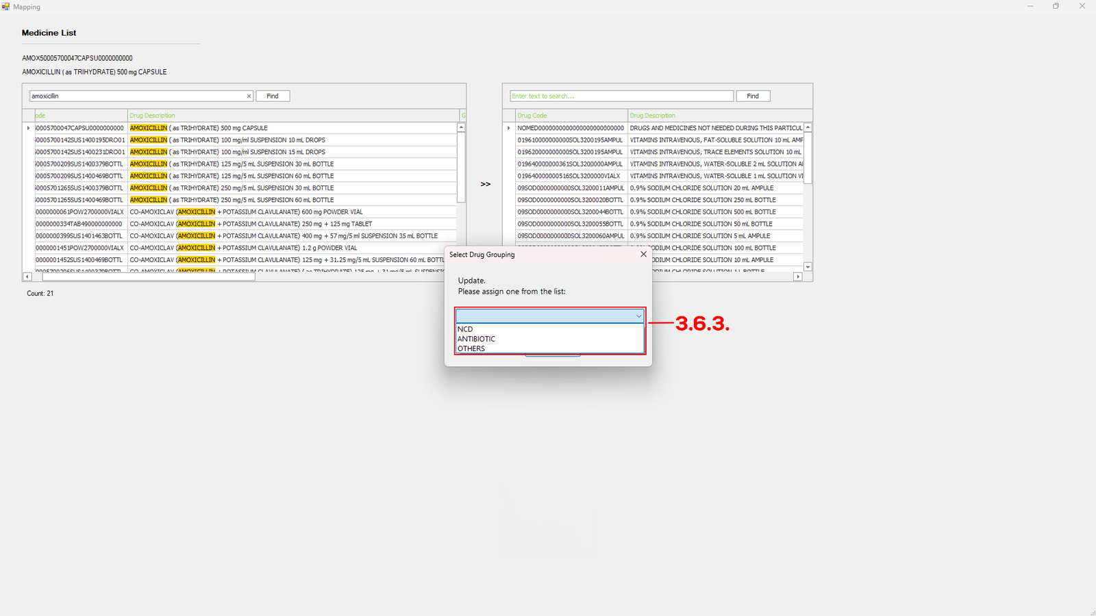 Next, select the medicine from the Drug Medicine drop-down menu (see 11.3).